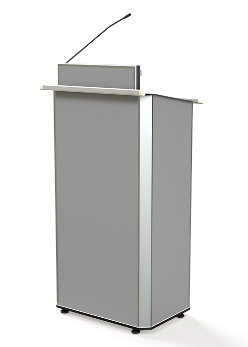 דוכני הנואם מסדרה POD-LBC-R מציגים דוכן נואם פונקציונלי ,הבנוי שלדת פרופילי אלומיניום ייעודיים עם חלל פנימי מוסתר ע"י דפנות צד, הכולל מדף פנימי ,מדף נואם עשוי לוח אלומיניום מכופף בגימור אנודייז כסוף. דוכני הנואם מסדרה POD-LBC-R מוצעים עם בסיס עשוי לוח HPL עמיד וחזק ,עמיד במים. על לוח החזית ודפנות הצד העשוים לוחות אלומיניום תלת שכבתי, הניתן להזמנה בגוון כסוף / לבן /שחור ואף עם הדפס דוגמת עץ יוקרתי. ניתן לשלב מיתוג קבוע בהדפסה ישירה או מתחלף בשילוב מערכות הפרופילים שלנו.