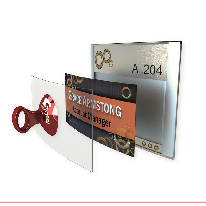 פרופילי המערכת תוכננו כך שיתאימו לשימוש עם גדלי נייר סטנדרטיים A8-A4 כמדיה מודפסת, יתרון חשוב ללקוח המעוניין להפיק בעצמו את עיצוב השלטים.יחידות השילוט כוללות שקף מגן קדמי מפוליקרבונט איכותי.בחזית השלטים ניתן לשלב מגוון חומרים גמישים בעובי של עד 1.6 מ"מ ליצירת אין סוף עיצובים ייחודיים.